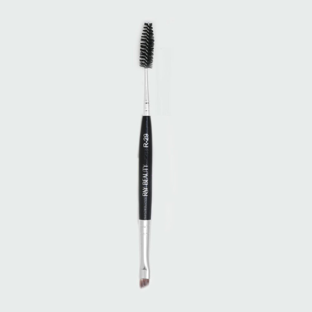 This dual-ended eyebrow brush is designed to professionally apply brow powders, creams, gels, and waxes with ease. Dual ended with an angular brush that is flat and yet dense on one side and a spoolie on the other end.
